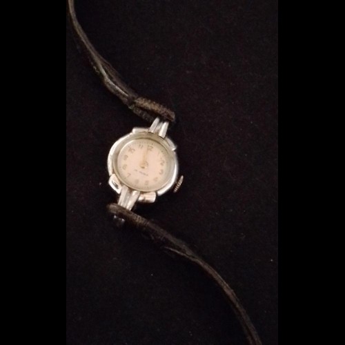 Magnifique petite montre féminine de type Art Déco, mécanique à remontage manuel. Muni de 15 Rubis et d'un bracelet en lanière de cuir.