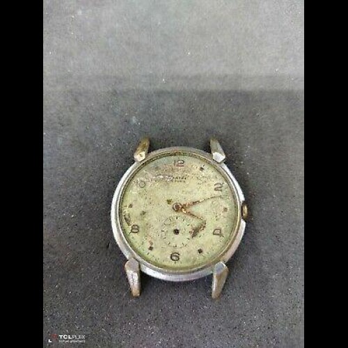 Marques liées à l'âge et trotteuse et verre manquants sur le cadran. Équilibre OK, doit être entretenu et nettoyé. Tous fabriqués en Suisse. Vendu strictement pour la réparation de pièces de rechange ou restauration comme ne fonctionnant pas..