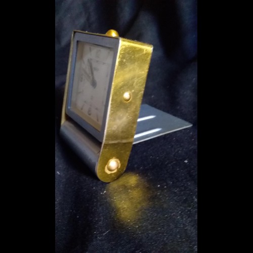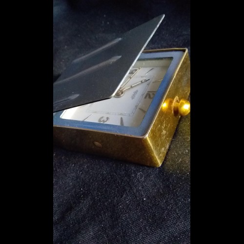Ancien réveil de voyage Jaeger Lecoultre 2 jours en métal doré et kaki.