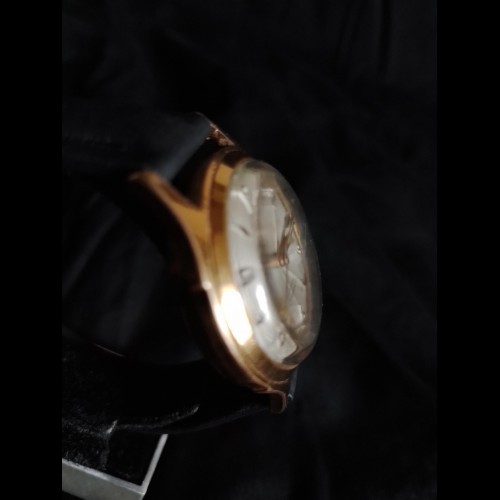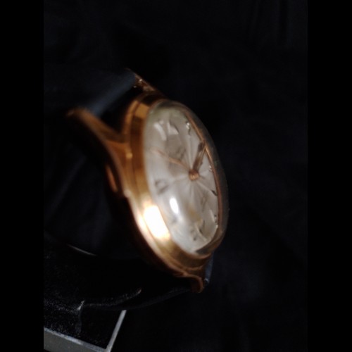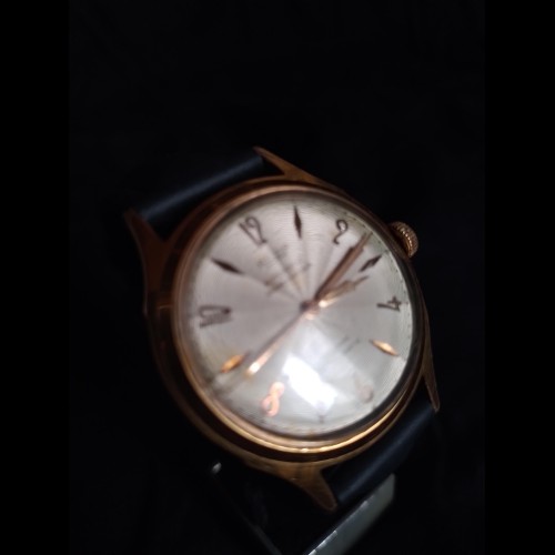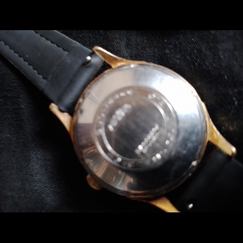Montre ACOR, mouvement MHS (Mouvement Horlogerie de Savoie) 237, incabloc, antimagnétic, diamètre 34 mm, boitier plaqué or, trotteuse centrale, bracelet en cuir.