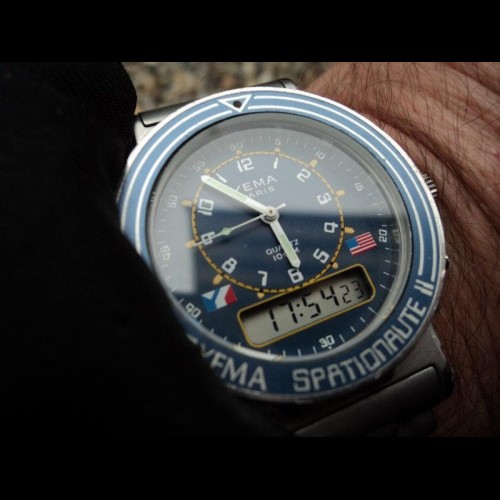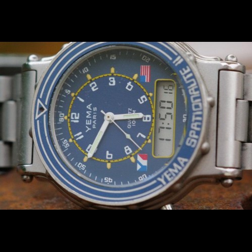 verre minéral en bel état cette montre a été mis au pont par Yema à partir d'un cahier des charges établi par le CNES.