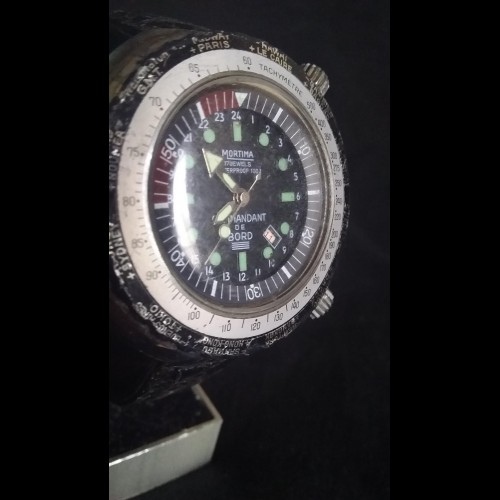 Type : Montre - bracelet , matériau du bracelet : caoutchouc , mouvement : mécanique (manuel) , couleur du bracelet : noir , nombre de rubis : 17 rubis , couleur du cadran : noir , année de fabrication : 1970-1979 , millésime : oui , département : hommes , modèle : Mortima Commandant De Bord , Forme de la montre : carrée , Taille du boîtier : 44 mm , Pays / région de fabrication : Suisse , Affichage : Analogique